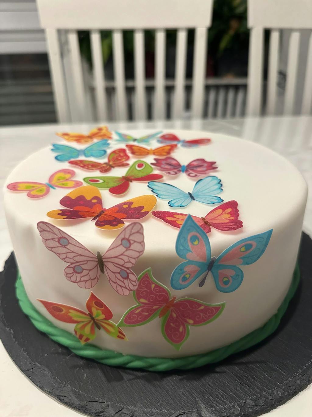Jetzt nur noch die mitgelieferte Dekoration auf deiner Torte anbringen bzw. nach Belieben selbst dekorieren. Fertig ist deine kunstvolle Torte!
