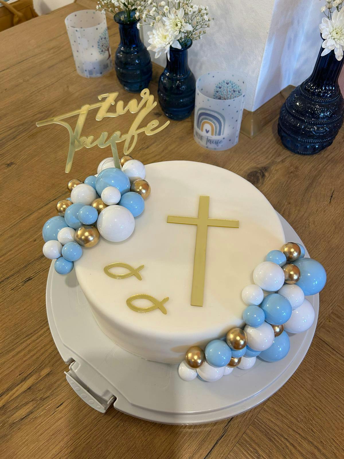 Jetzt nur noch die mitgelieferte Dekoration auf deiner Torte anbringen bzw. nach Belieben selbst dekorieren. Fertig ist deine kunstvolle Torte!
